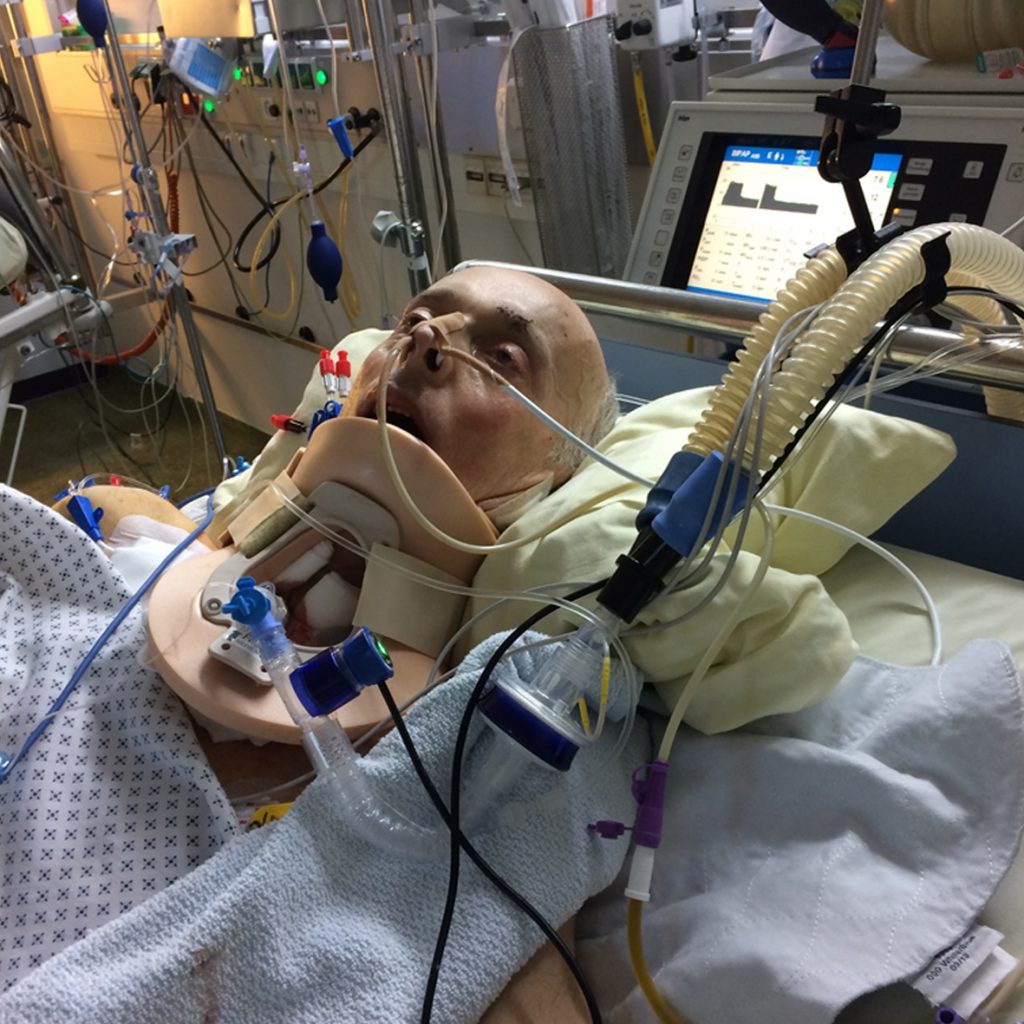 Noch während der Arzt seine Anweisungen gibt, haben die beiden Pfleger bereits den Griff am Fußende des Betts gepackt und in die Höhe gezogen. Trendelenburglage, jeder Ersthelfer kennt diese Schockmaßnahme. Mit dem Kopf nach unten und den Beinen nach oben drückt die Schwerkraft Blut aus dem größten Körperspeicher – den Venen – und zurück ins Herz.